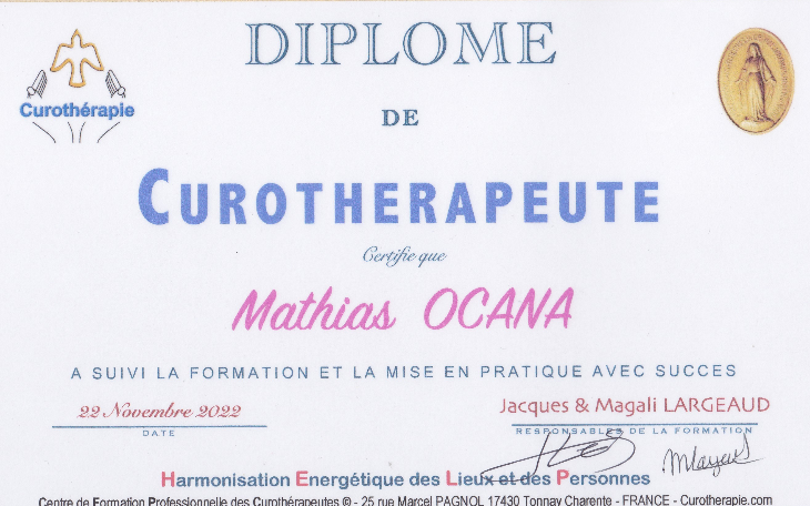 A la suite du soin je vous ferez parvenir une fiche bilan, expliquant en détail tout les éléments trouver, enlever, et ce qui a était fait pour vous réharmonisez.