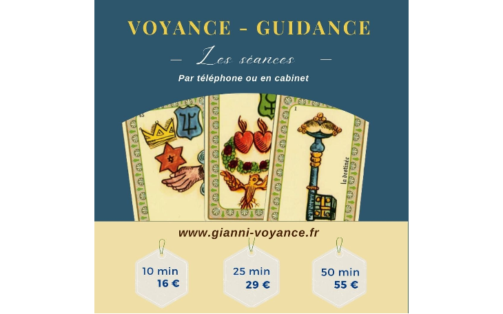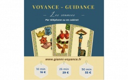 Gianni Anaël consulte par téléphone ou en cabinet en Charente ou en Vendée. Gianni vous propose des séance de 30min ou 50 min. Lors de la séance plusieurs méthodes sont utilisées pour venir appuyer ses flashs et sa médiumnité ainsi Gianni peut utiliser la numérologie, la tarologie, les oracles ou tout simplement une voyance avec des prédictions sur photo.