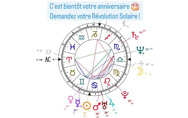 En résumé, la révolution solaire agit comme une boussole astrologique, vous offrant des pistes d’action et vous permettant d’aborder l’année à venir de manière plus éclairée et proactive.